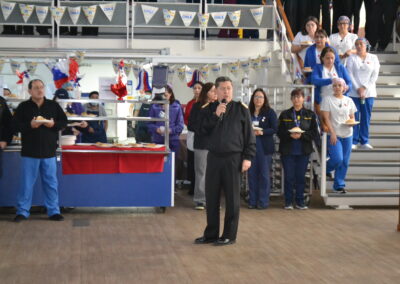 Durante el evento, el Capitán de Navío SN Cristián González Garfias dio lectura al mensaje del Comandante en Jefe de la Armada, el cual expresó un sincero saludo y reconocimiento a toda la dotación. Destacó que el accionar diario de los marinos se inspira en el ejemplo de los próceres y en los valores históricos de la institución. En su mensaje, hizo un llamado a mantener vivo el espíritu de unidad, lealtad y amor por Chile, y a renovar el juramento de custodiar los intereses marítimos de la nación. Finalizó deseando felicidad y orgullo a cada dotación y a sus familias, tanto en tierra como en el mar.