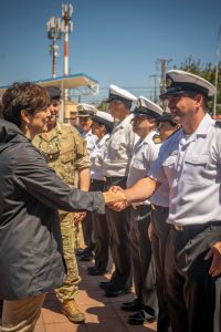 La secretaria de Estado fue recibida por el Director del Hospital Naval de Talcahuano, Capitán de Navío SN Cristián González Garfias, con quien sostuvo una reunión de trabajo para analizar la capacidad de respuesta del recinto y su integración con la red de salud regional frente a la contingencia que nos afecta.