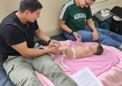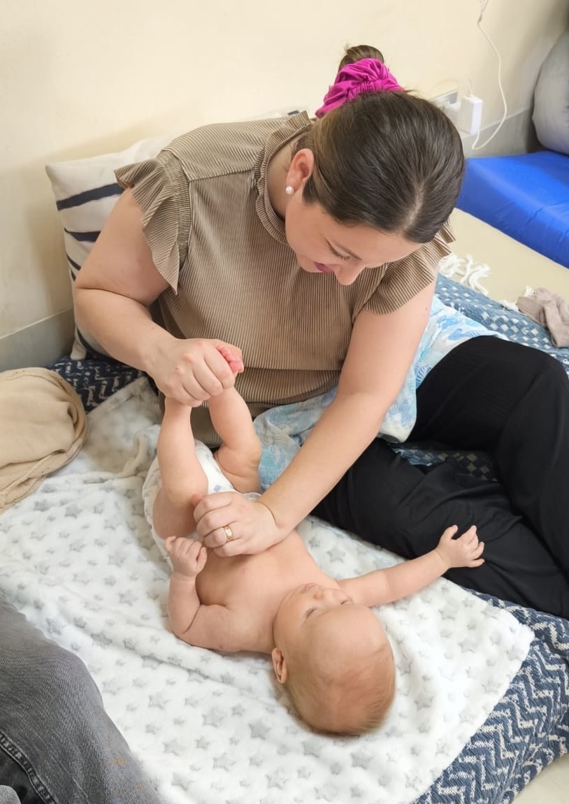 - El Bienestar físico y emocional: Uno de los principales objetivos del masaje es promover el bienestar integral del bebé. El masaje ayuda a restablecer el equilibrio del cuerpo, alivia molestias frecuentes como los cólicos o gases y estimula el sistema nervioso y digestivo. Además, favorece la relajación y contribuye a mejorar la calidad del sueño, creando un ambiente de tranquilidad y seguridad para la infancia.